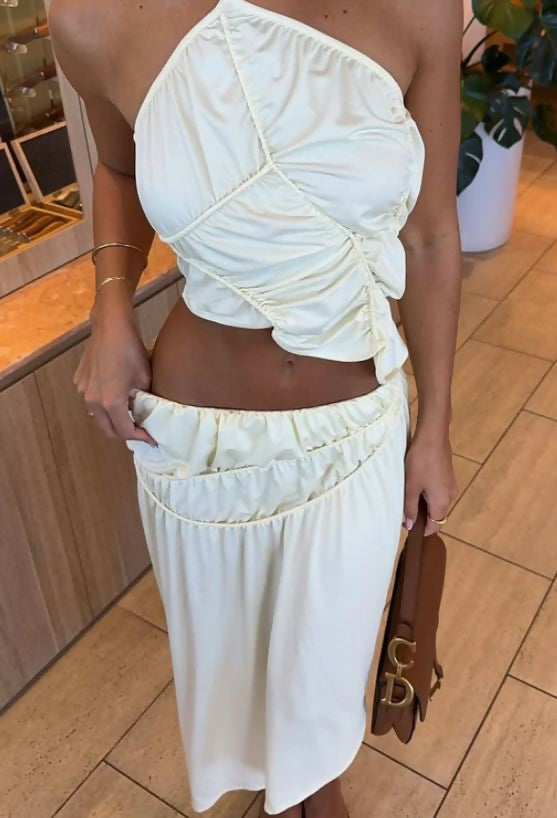 SIR the Label Frankie Gathered Midi Dress in Emerald Reflection