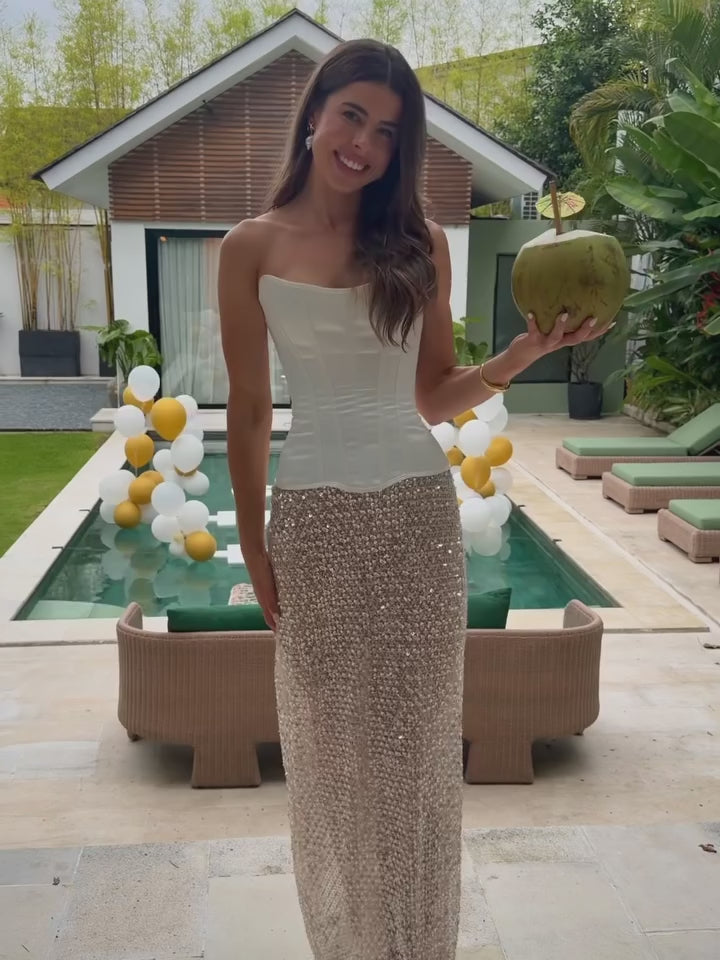 Perfect Corset White Grace Corset Top + Sydney Lane Crystal Sequin Quartz Skirt