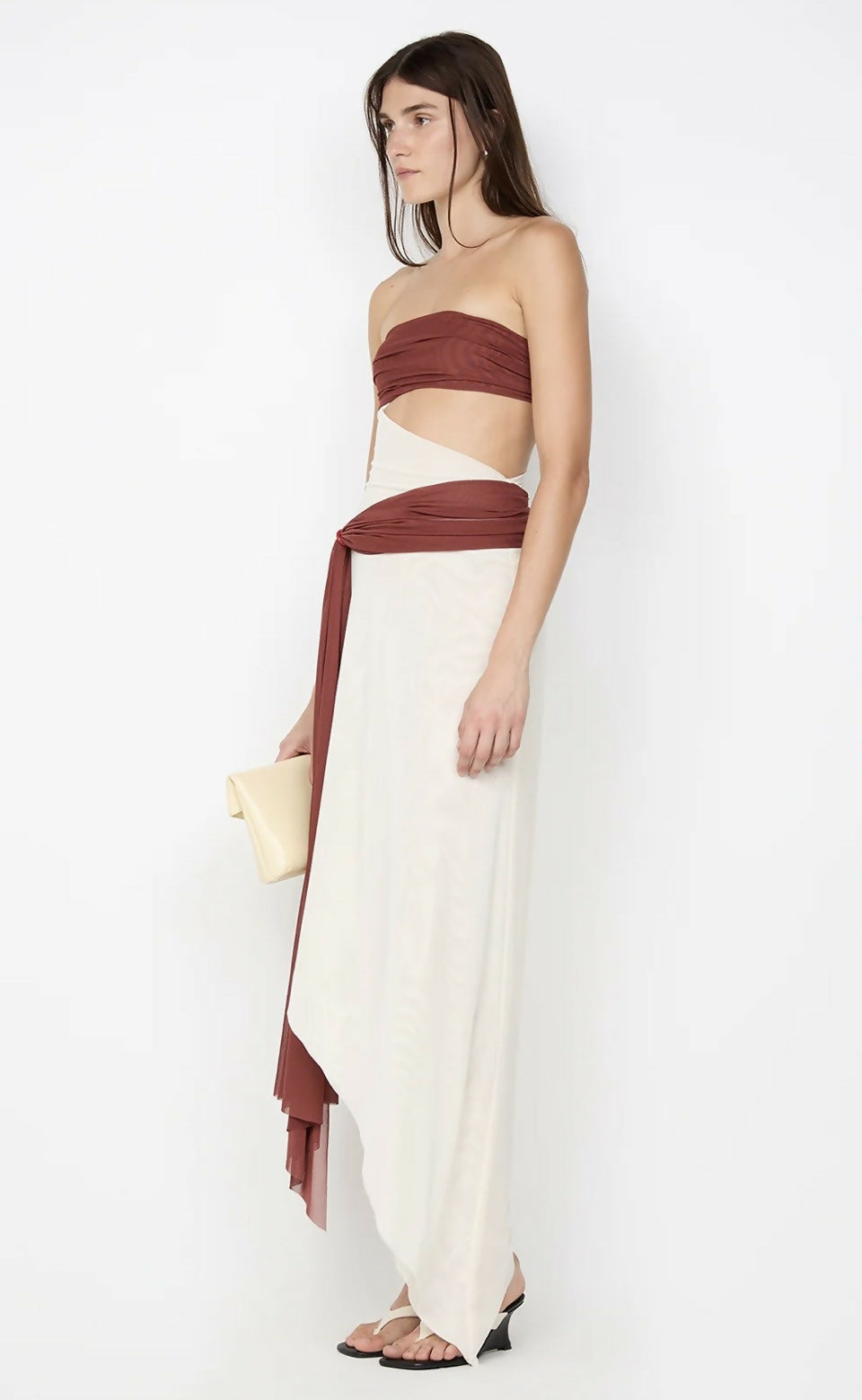 Ayla Strapless Midi Dress Rust/Buttercream Size 8