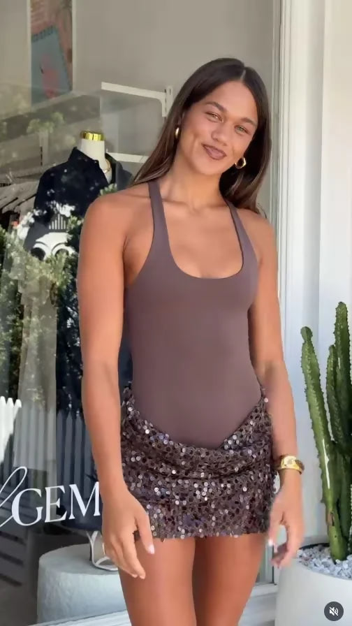 De La Vali Ravenna Mini Dress in Chocolate Brown Jersey Size XS