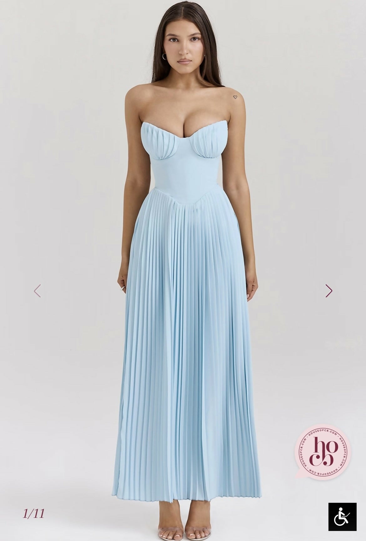 House of CB Marcella Pleated Maxi Dress Ocean Blue Size Small